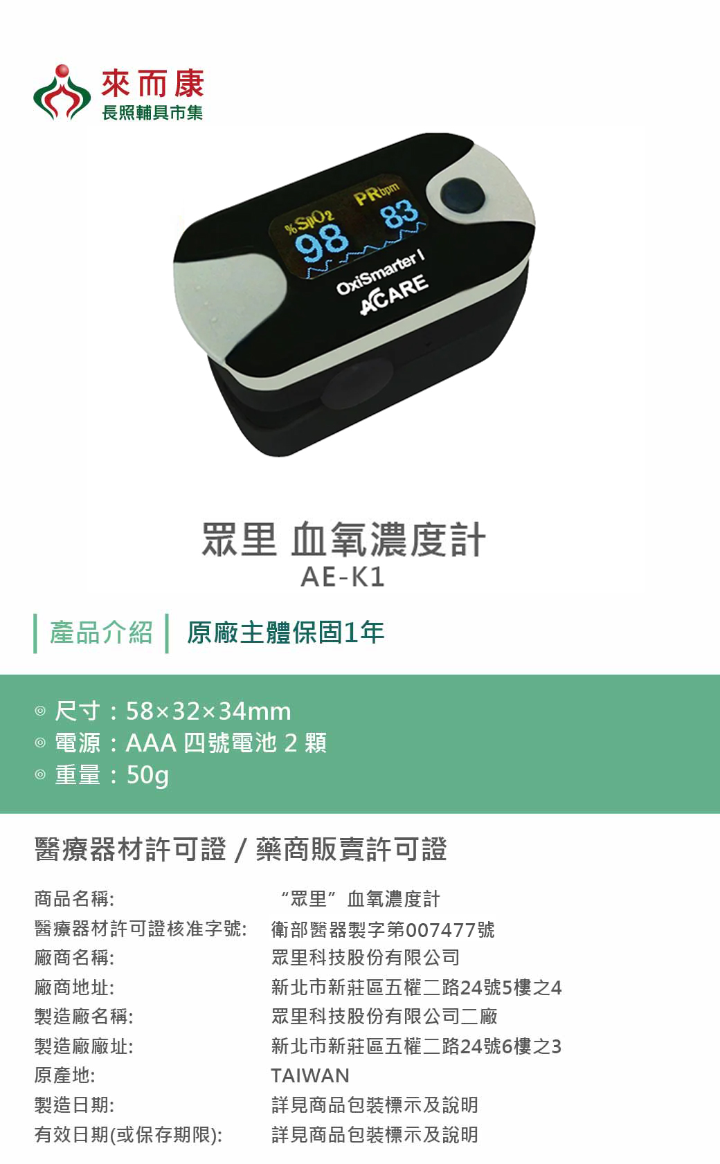 衛部醫器製字第007477號