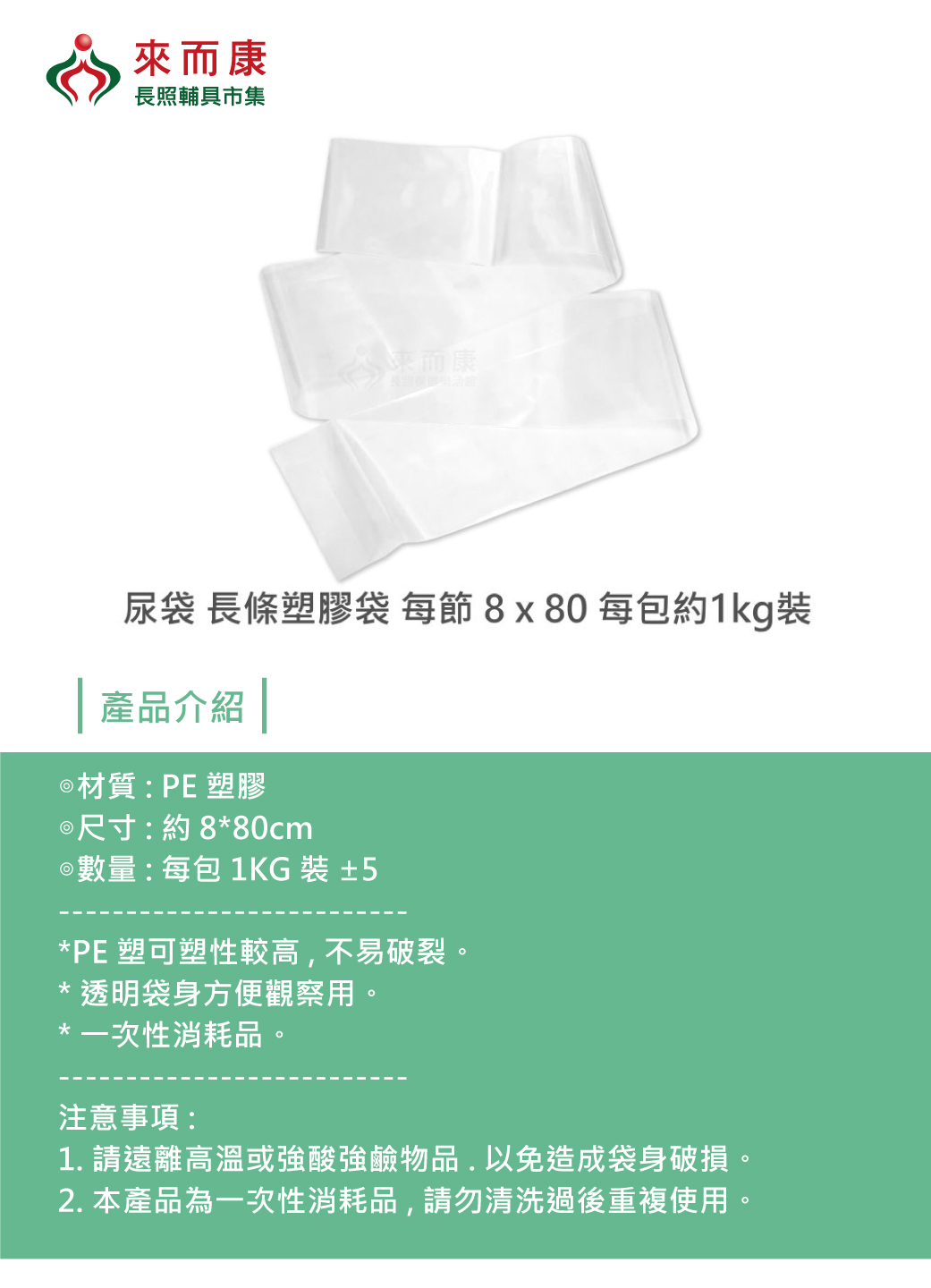 尿袋 長條 塑膠袋 每節 8x80cm 單包販售 每包約1kg裝 集尿袋
