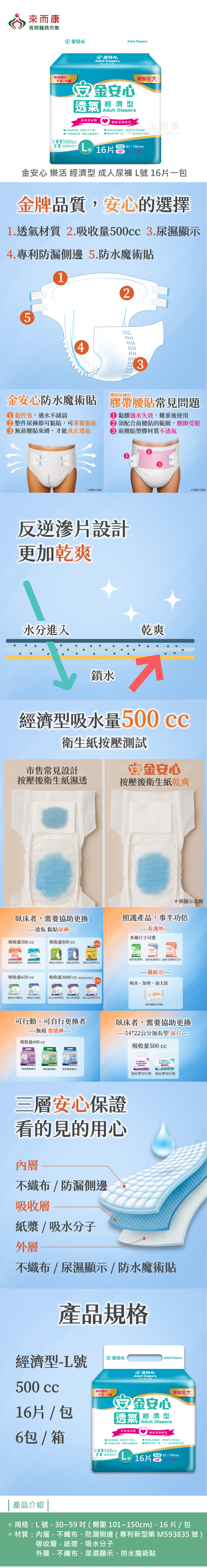 金安心 樂活 經濟型 成人尿褲 L號 16片一包 一箱6包販售 成人尿布 尿布 成人紙尿布