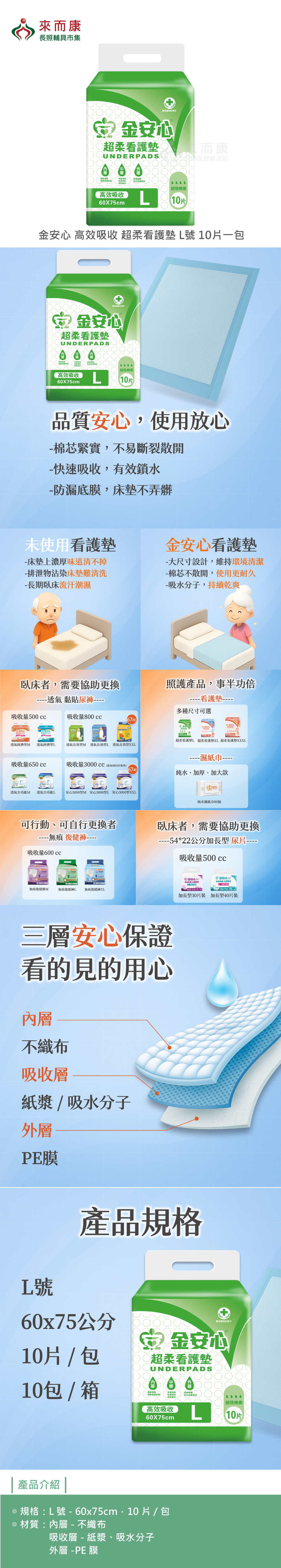 金安心 高效吸收 超柔看護墊 L號 10片一包 一箱10包販售 護墊 尿布墊 看護墊