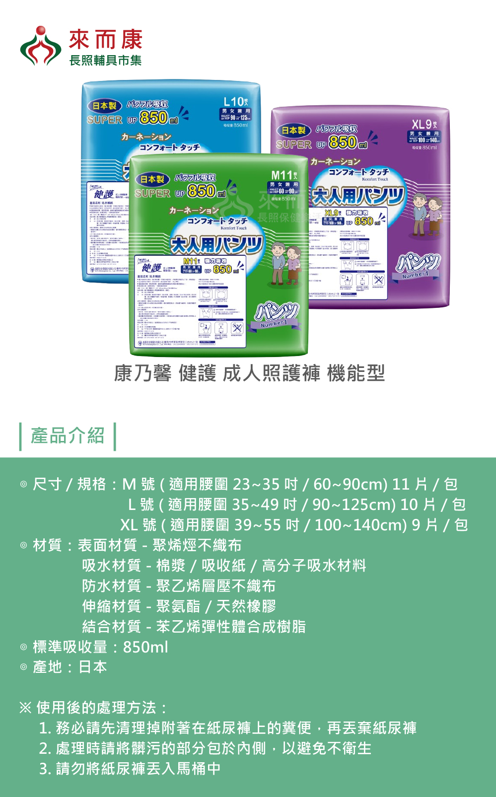 康乃馨 健護 成人照護褲 機能型 8包/箱販售 成人 照護褲 紙尿褲 尿褲 日本製
