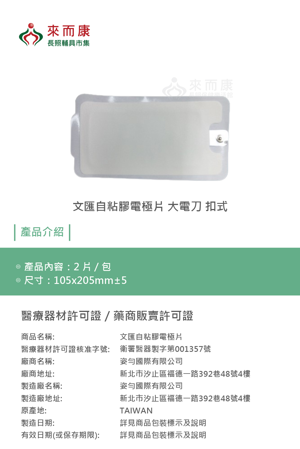 文匯自粘膠電極片 大電刀 扣式 電療貼片 電極貼片 鈕扣式電療貼片 網路不販售來電詢問