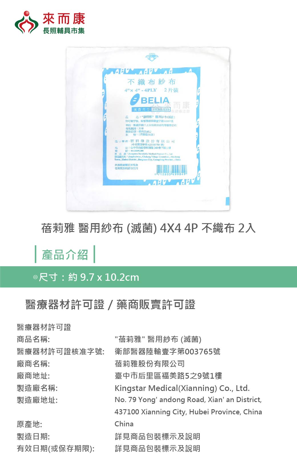 蓓莉雅 醫用紗布 (滅菌) 4X4 4P 不織布 2入 100包販售 滅菌 醫用 紗布 紗布塊