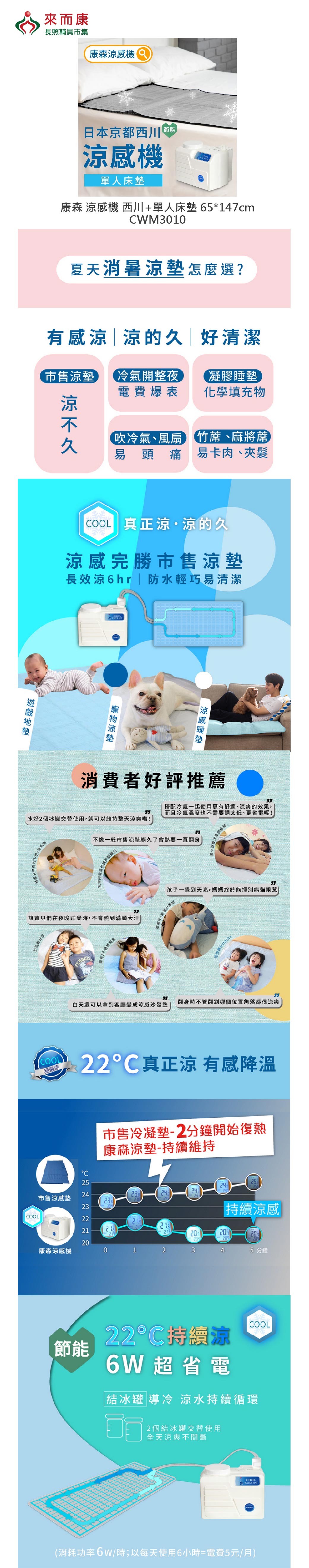 康森水循環涼墊,22℃有感涼,延長冷氣涼感不熱醒
