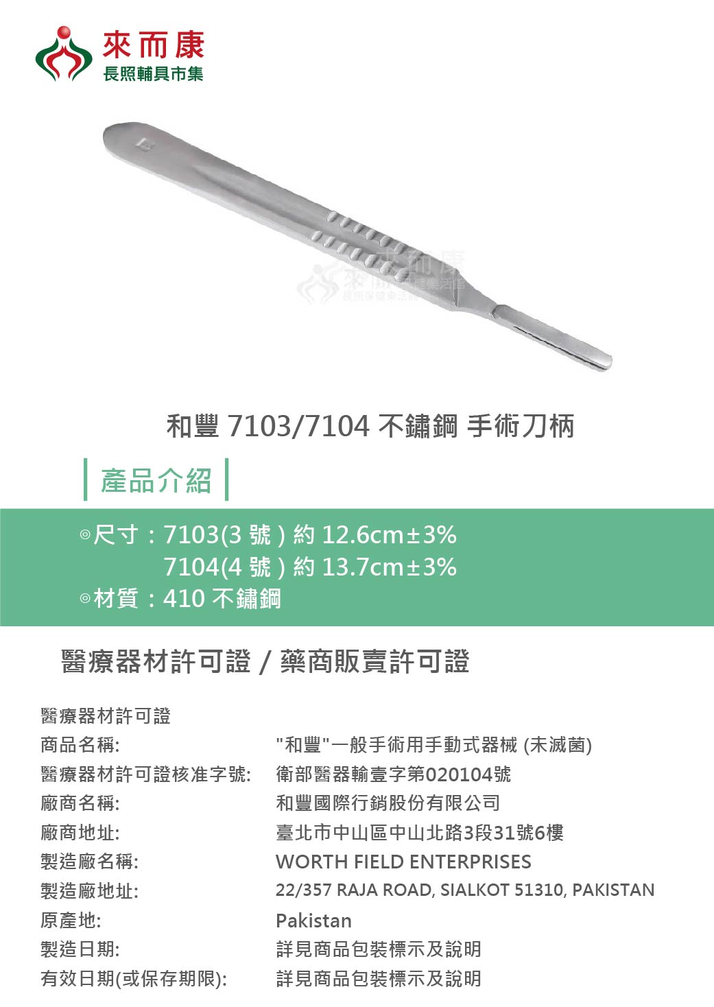 和豐 一般手術用手動式器械 (未滅菌) 7103 不鏽鋼 手術刀柄 手術刀 不鏽鋼手術刀