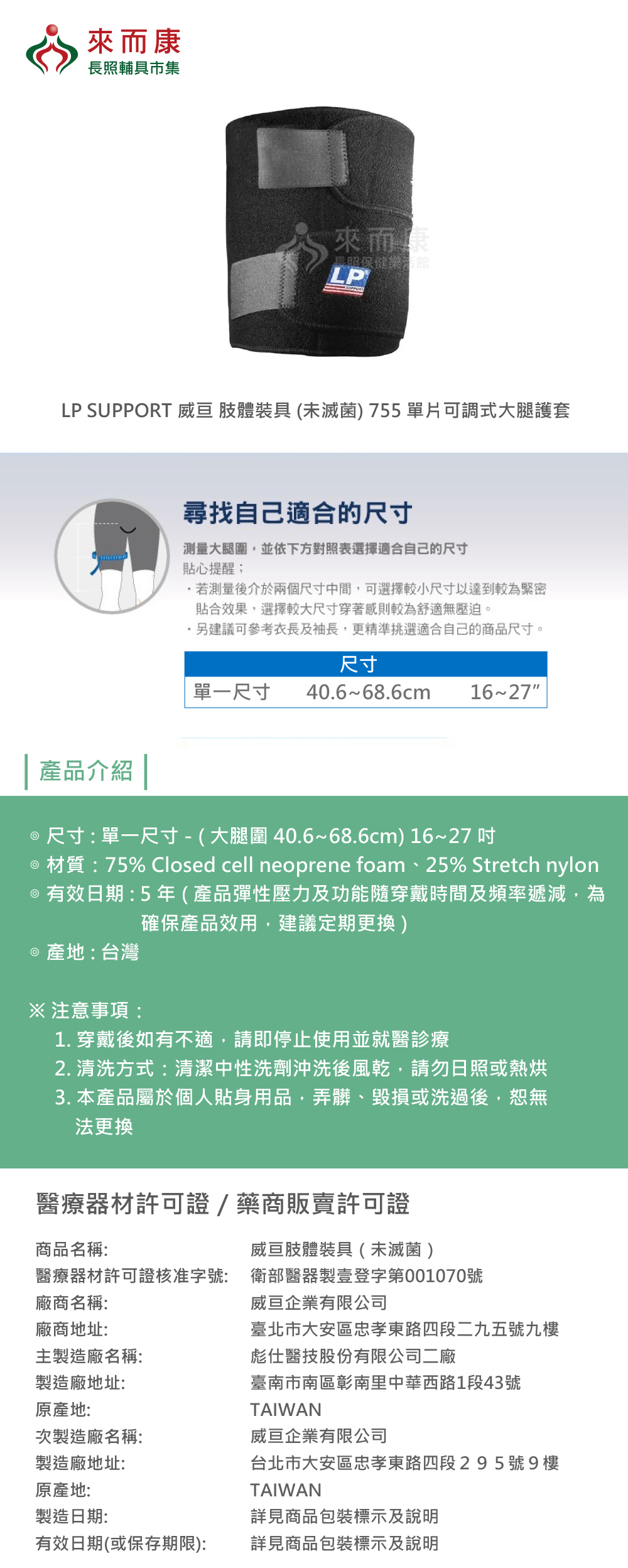 .單片可調式設計能依需求調整對大腿束縛的加壓