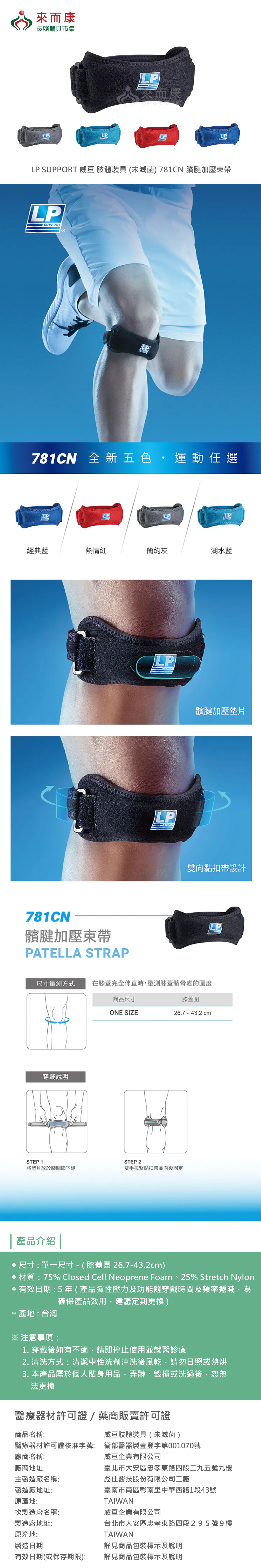 LP SUPPORT 威亘 肢體裝具 (未滅菌) 781CN 臏腱加壓束帶 髕骨 加壓 束帶 護具