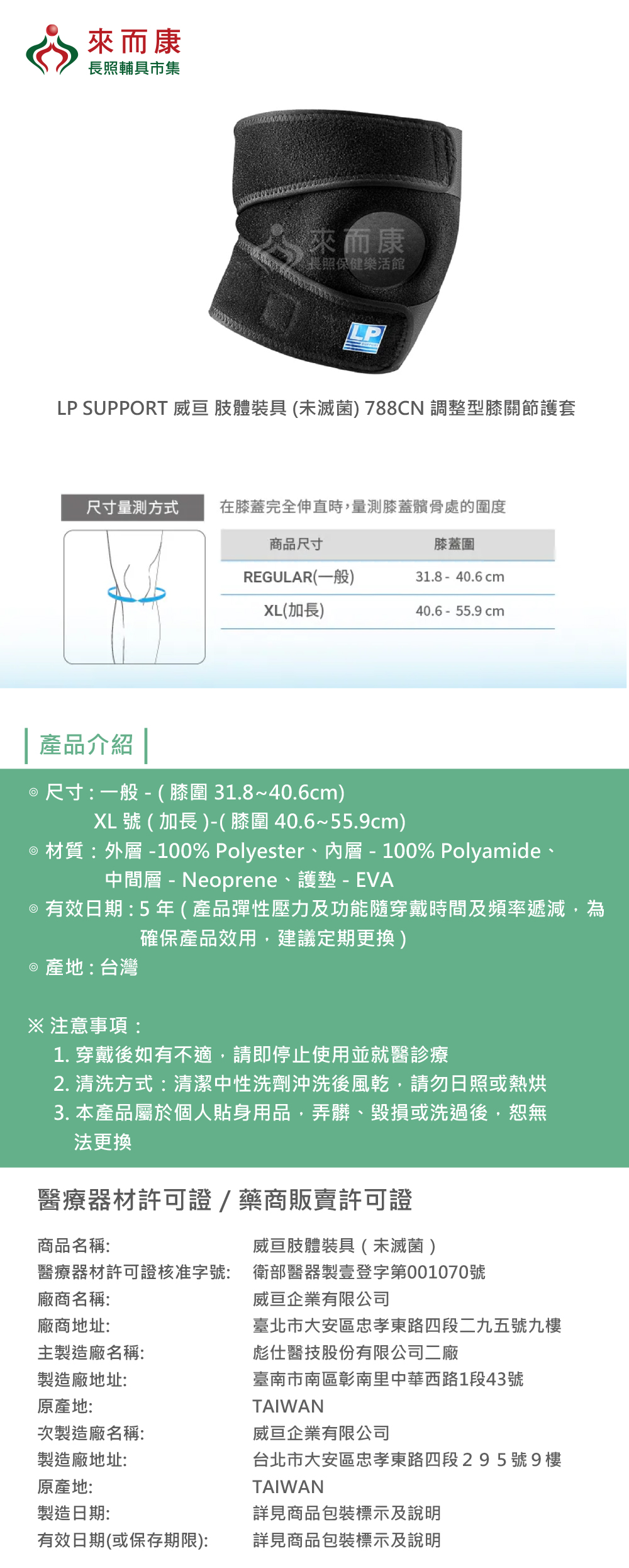 LP SUPPORT 威亘 肢體裝具 (未滅菌) 788CN 調整型膝關節護套 膝部 膝蓋 護膝 護具