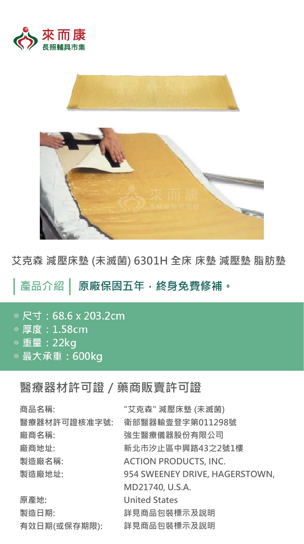 Action 艾克森 減壓床墊 (未滅菌) 6301H 全床 床墊 背膠固定款 減壓墊 脂肪墊 全床減壓床墊 減壓 坐墊 座墊