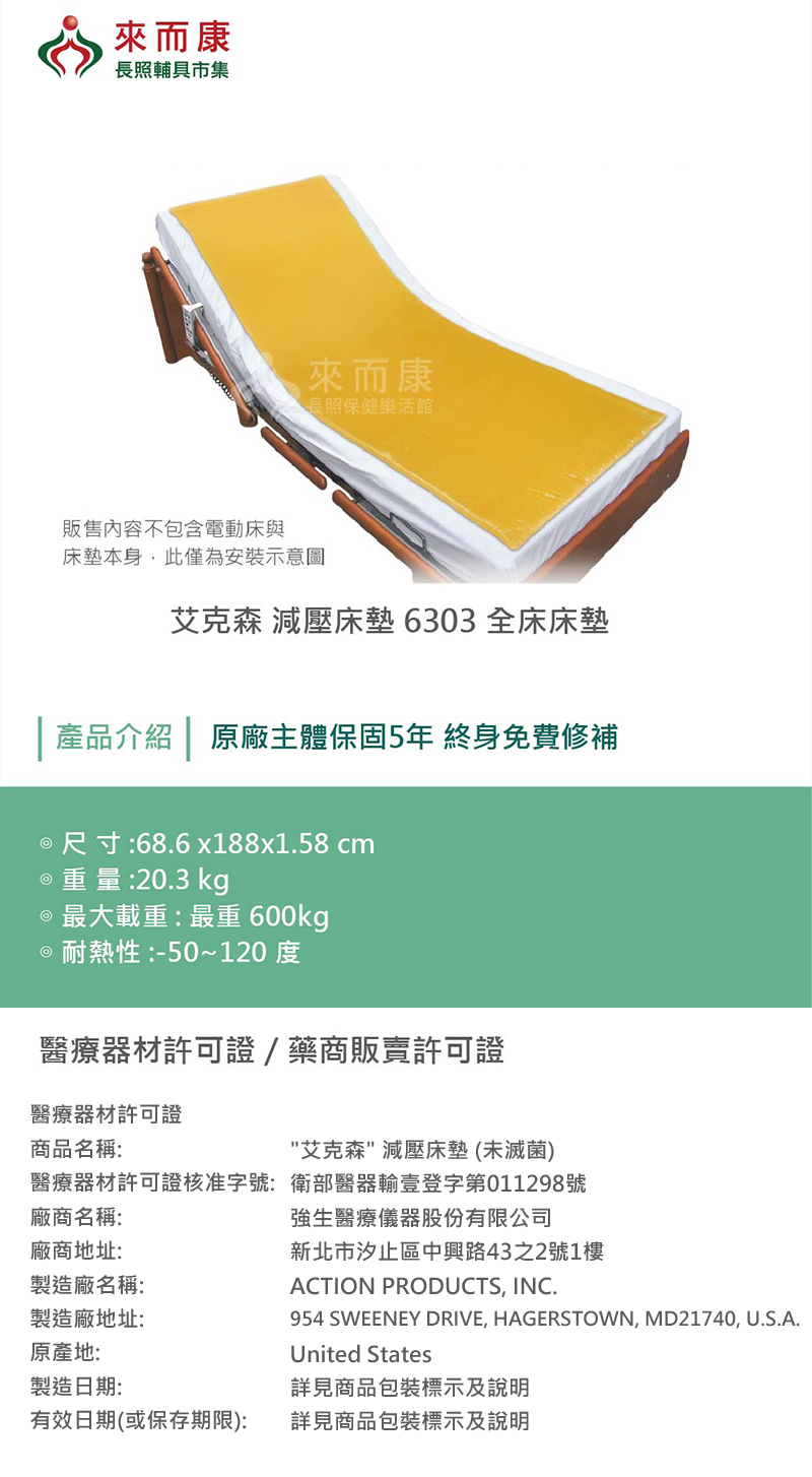 Action 艾克森 減壓床墊 (未滅菌) 6303 全床床墊 脂肪墊 減壓墊 坐臥 兩用 床墊