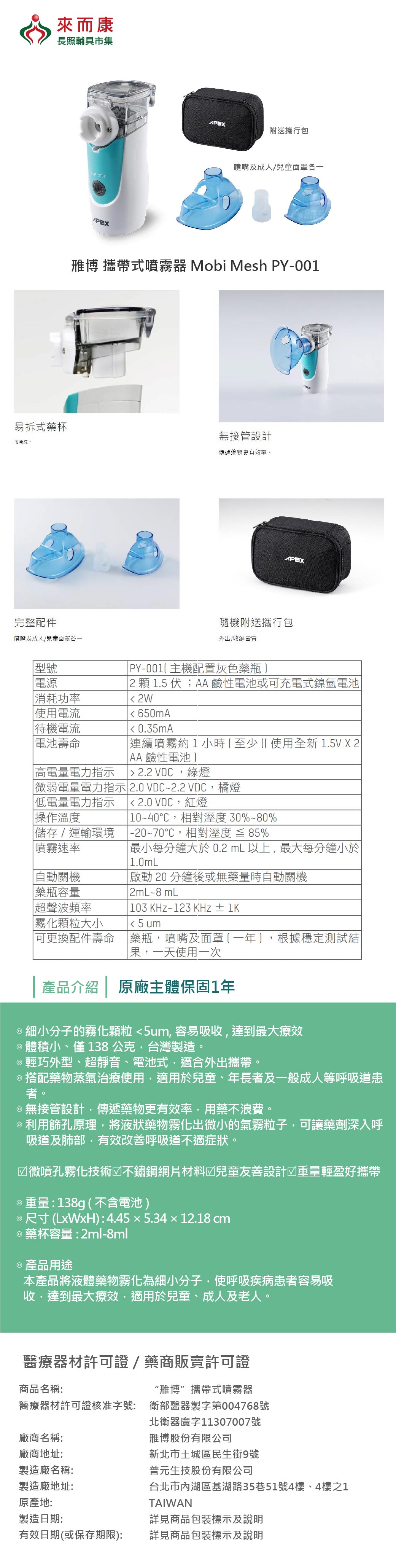 * 完整配件:噴嘴及成人/兒童面罩各一