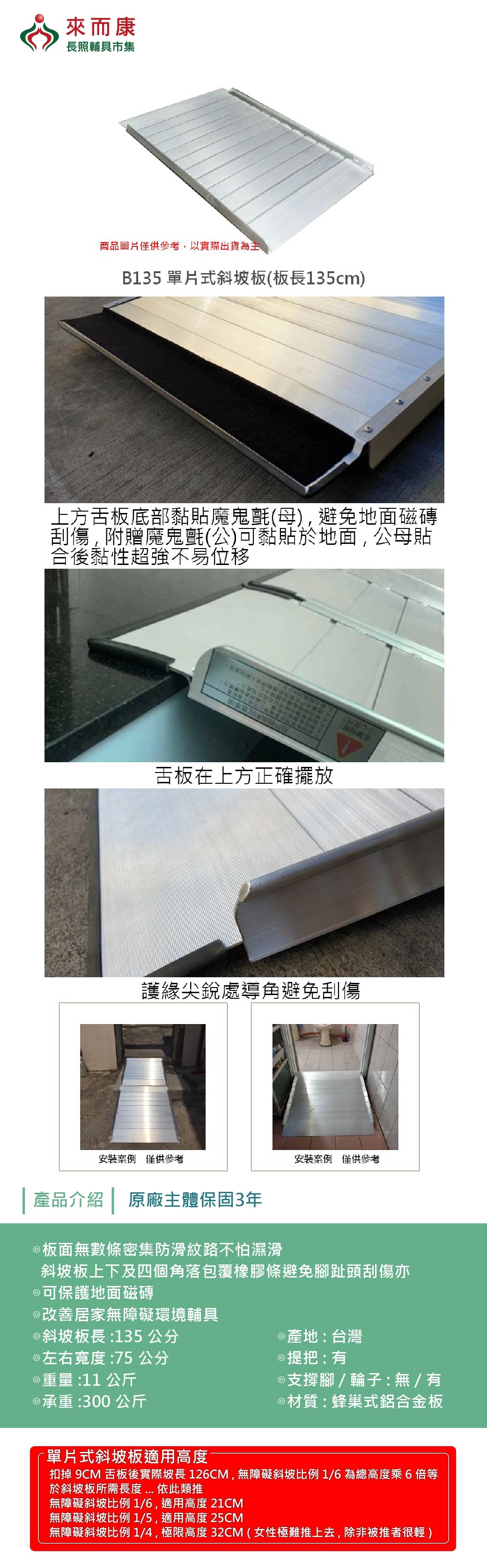 B135 單片式斜坡板(板長135cm) 台灣製 斜坡板 斜坡板補助(不含安裝)