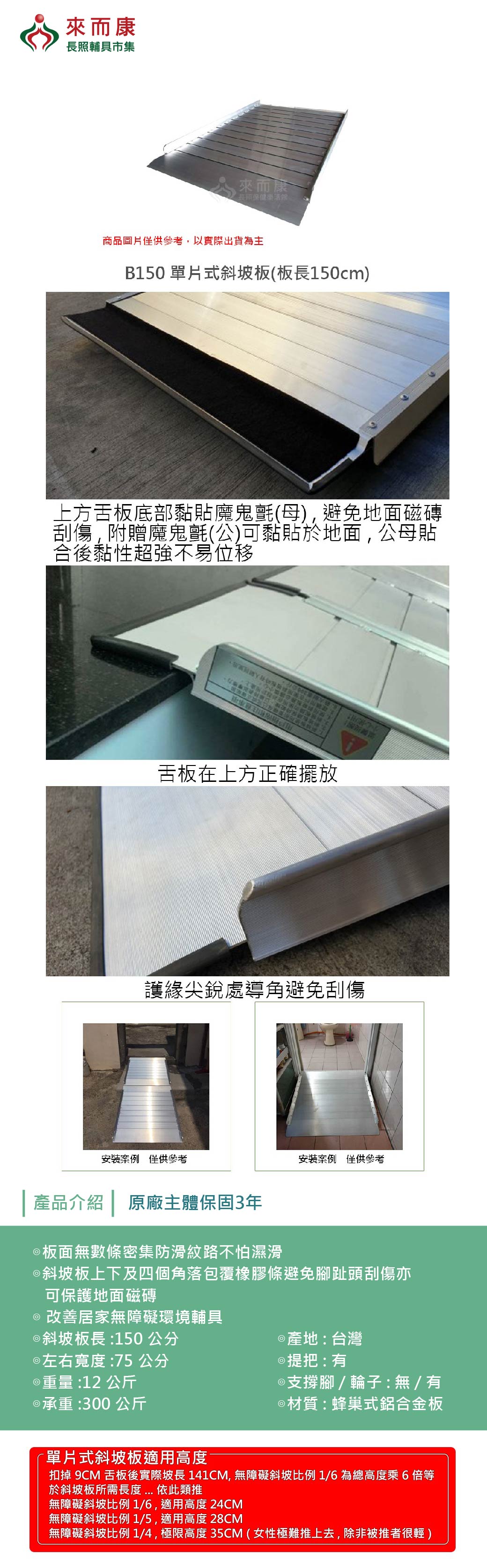 B150 單片式斜坡板(板長150cm) 台灣製 斜坡板 斜坡板補助(不含安裝)