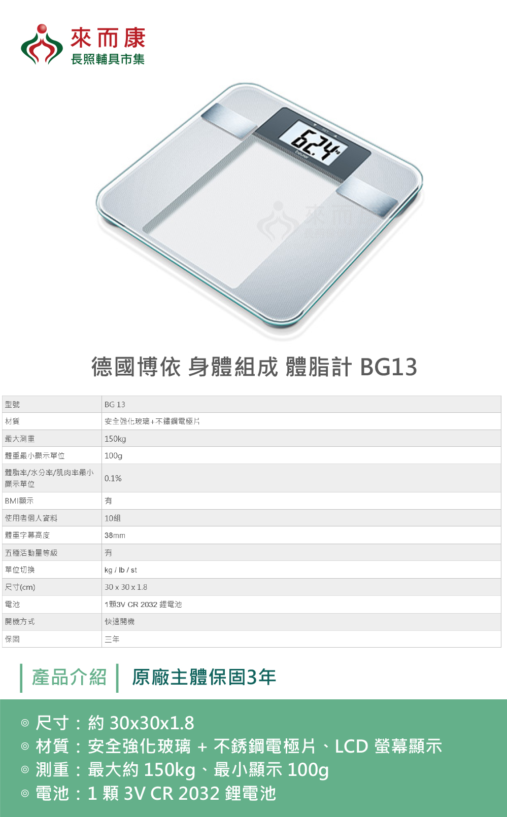 -可測量體重、體脂、水分率與肌肉率、身體質量指數BMI