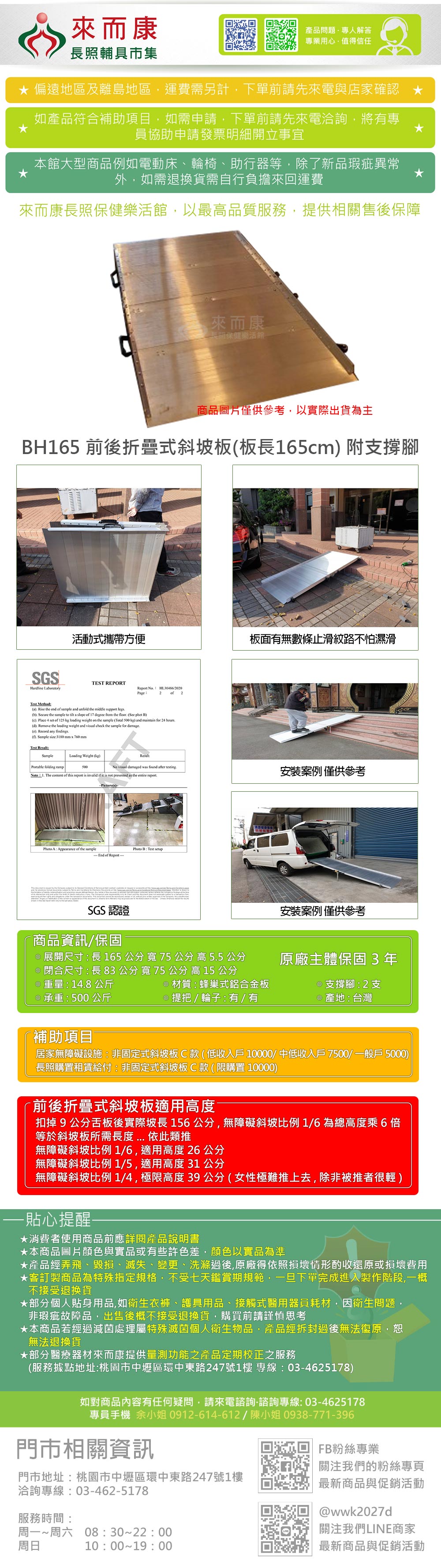 BH165 前後折疊式斜坡板(板長165cm) 附支撐腳 台灣製 斜坡板 斜坡板補助