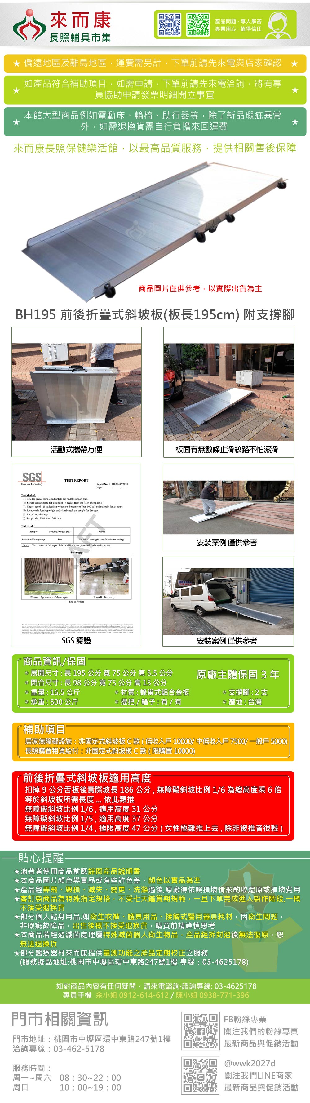 BH195 前後折疊式斜坡板(板長195cm) 附支撐腳 台灣製 斜坡板 斜坡板補助