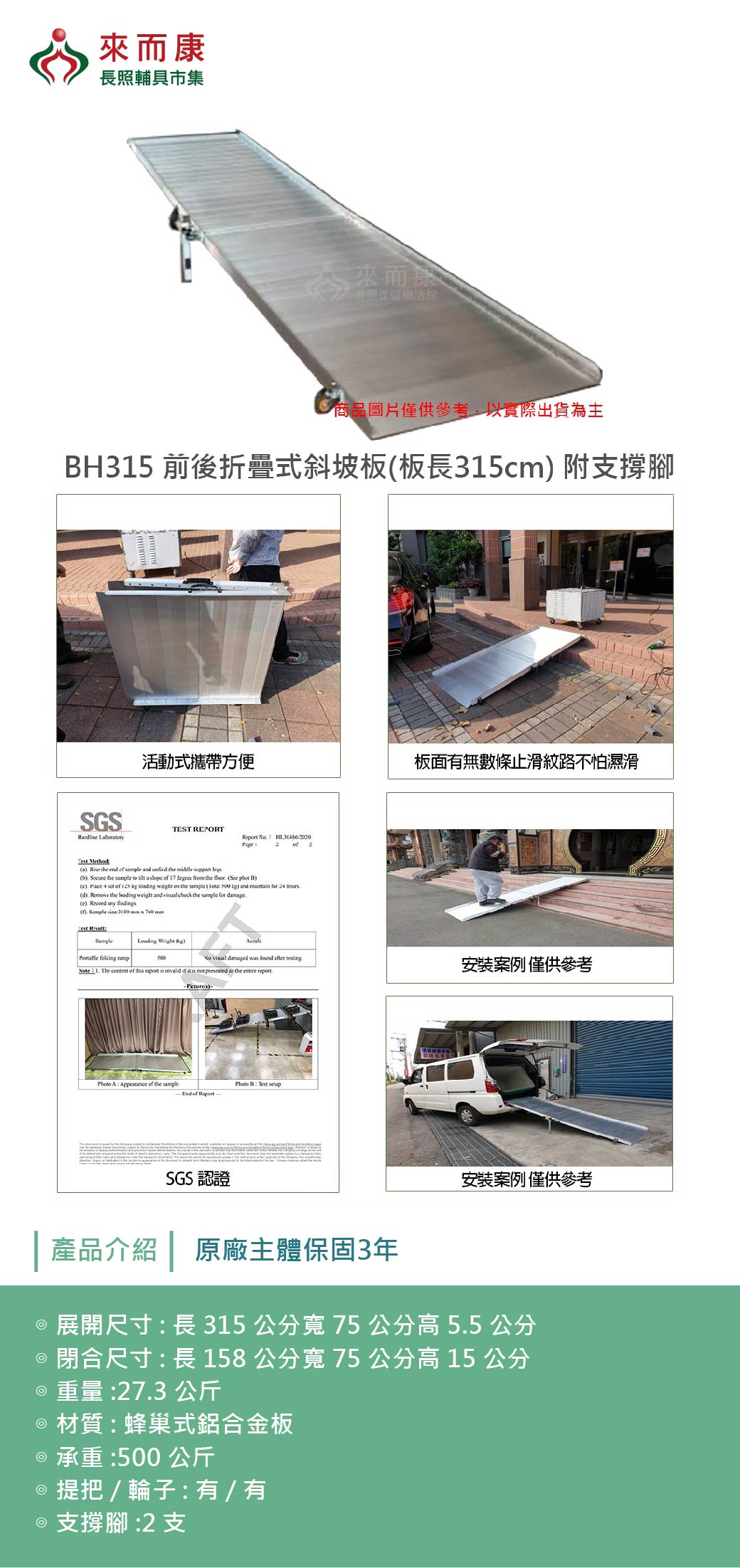 BH315 前後折疊式斜坡板(板長315cm) 附支撐腳 台灣製 斜坡板 斜坡板補助