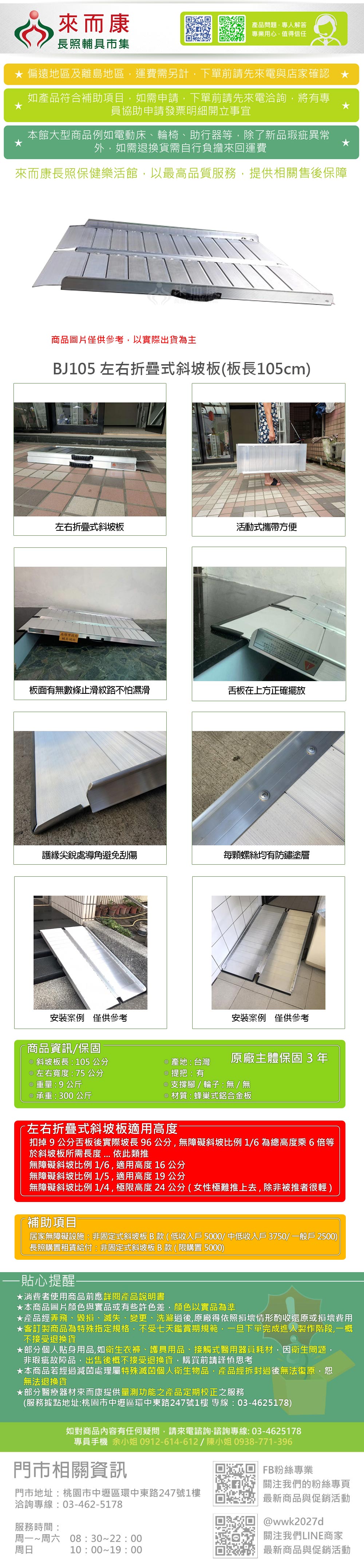BJ105 左右折疊式斜坡板(板長105cm) 台灣製 斜坡板 斜坡板補助(不含安裝)