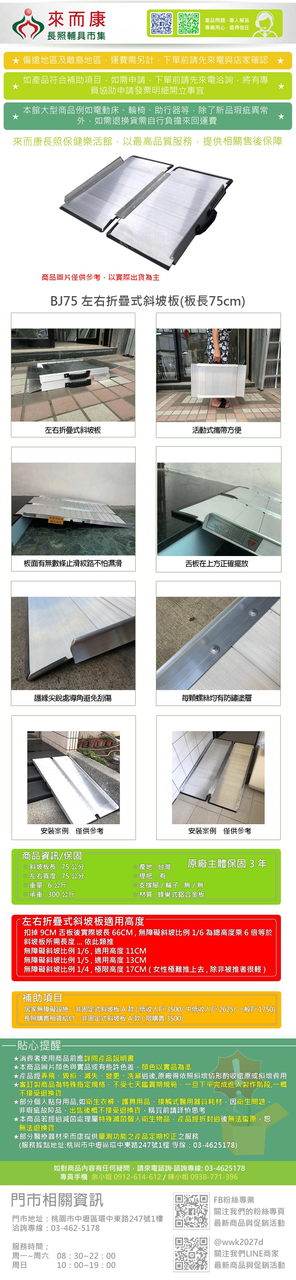 BJ75 左右折疊式斜坡板(板長75cm) 台灣製 斜坡板 斜坡板補助(不含安裝) (不含止滑條)