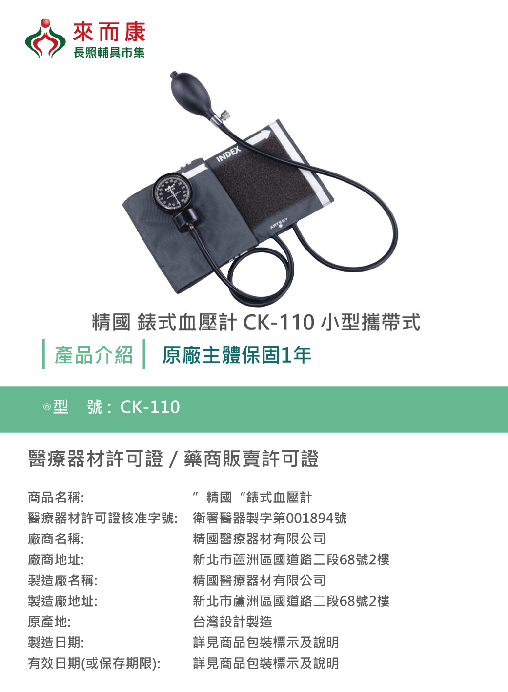 衛署醫器製字第001894號