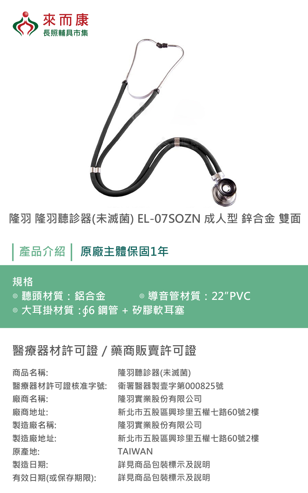 隆羽 隆羽聽診器(未滅菌) EL-04 多功能 五合一 鋅合金 雙面 聽診器 聽診 診聽器 EL-04