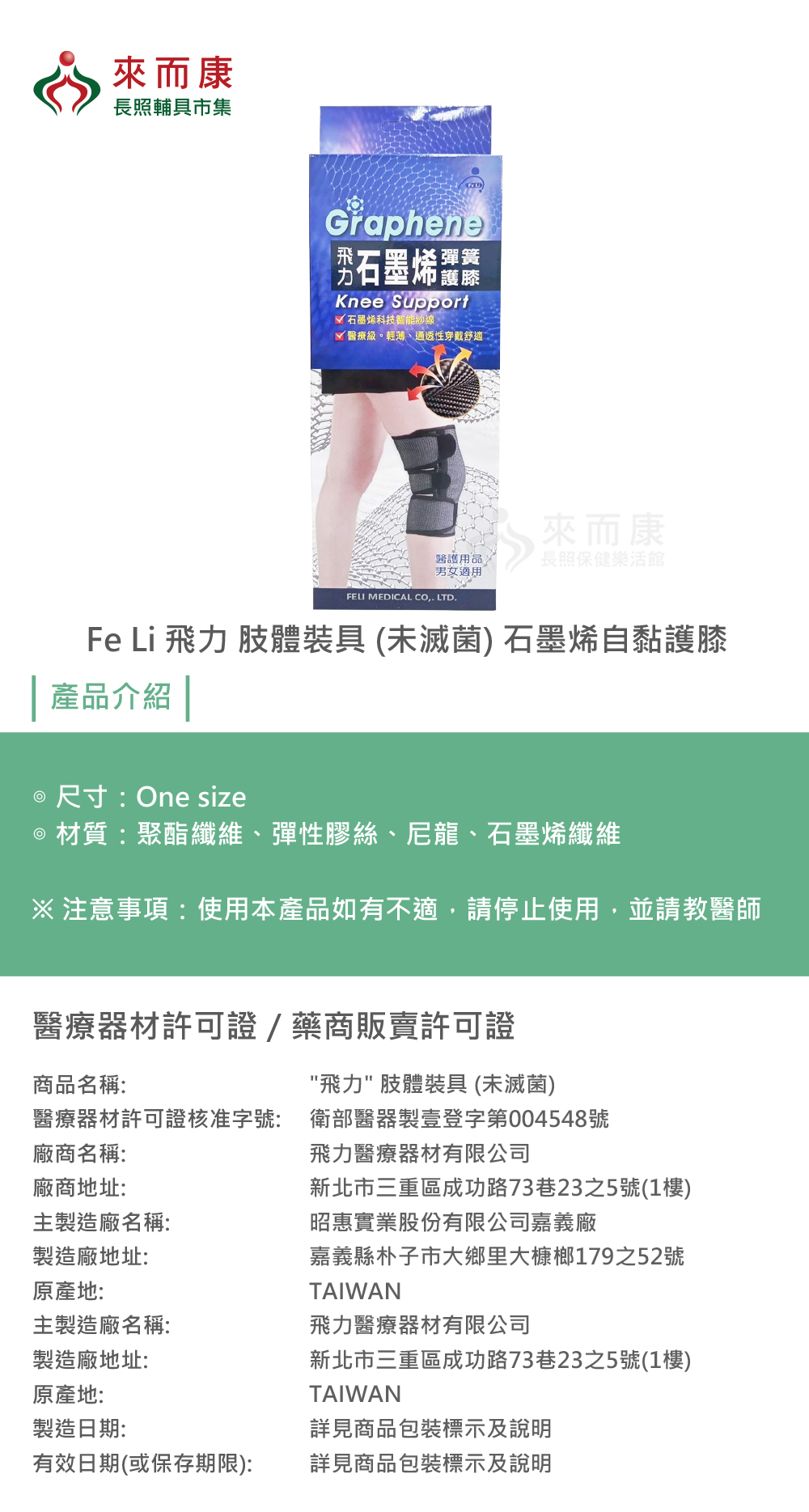 Fe Li 飛力 肢體裝具 (未滅菌) 石墨烯自黏護膝 石墨烯 護套 One size 自黏式 護膝 護具 男女適用