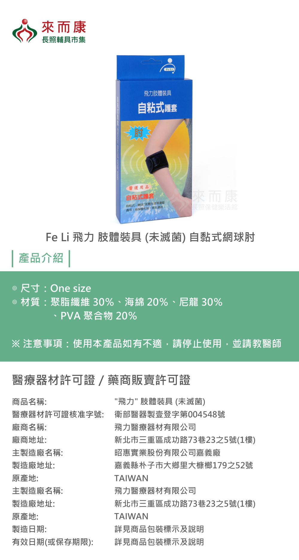 Fe Li 飛力 肢體裝具 (未滅菌) 自黏式網球肘 護套 One size 自黏式 網球肘 護肘 護具 男女適用