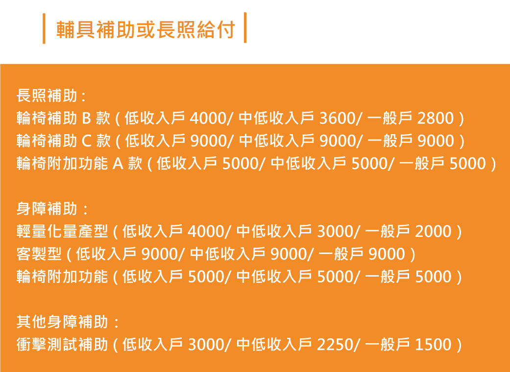 ※符合長照補助:輪椅B款、輪椅C款、附加功能A