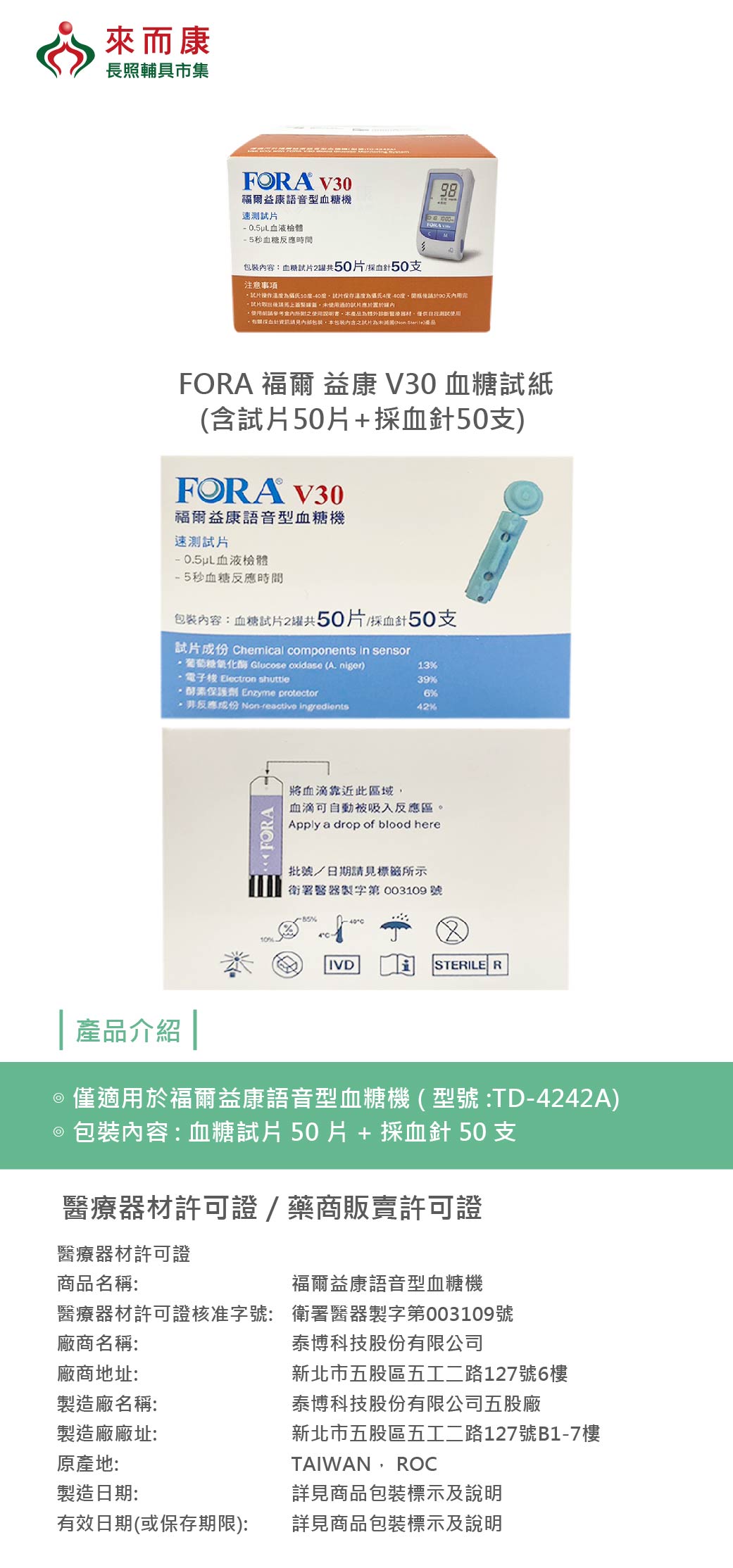 * 僅適用於福爾益康語音型血糖機 (型號:TD-4242A)