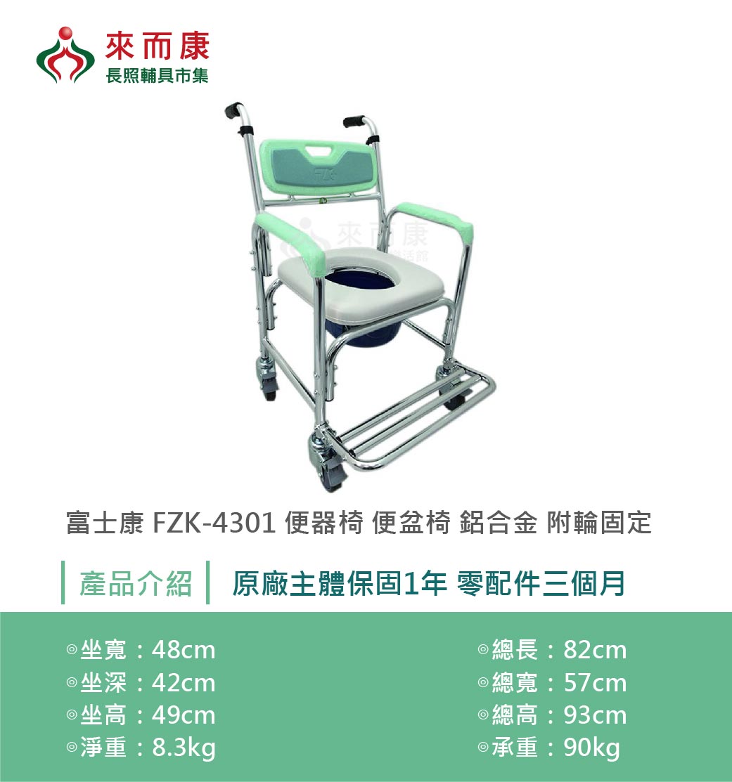 富士康 FZK-4301 便器椅 便盆椅 鋁合金 附輪固定