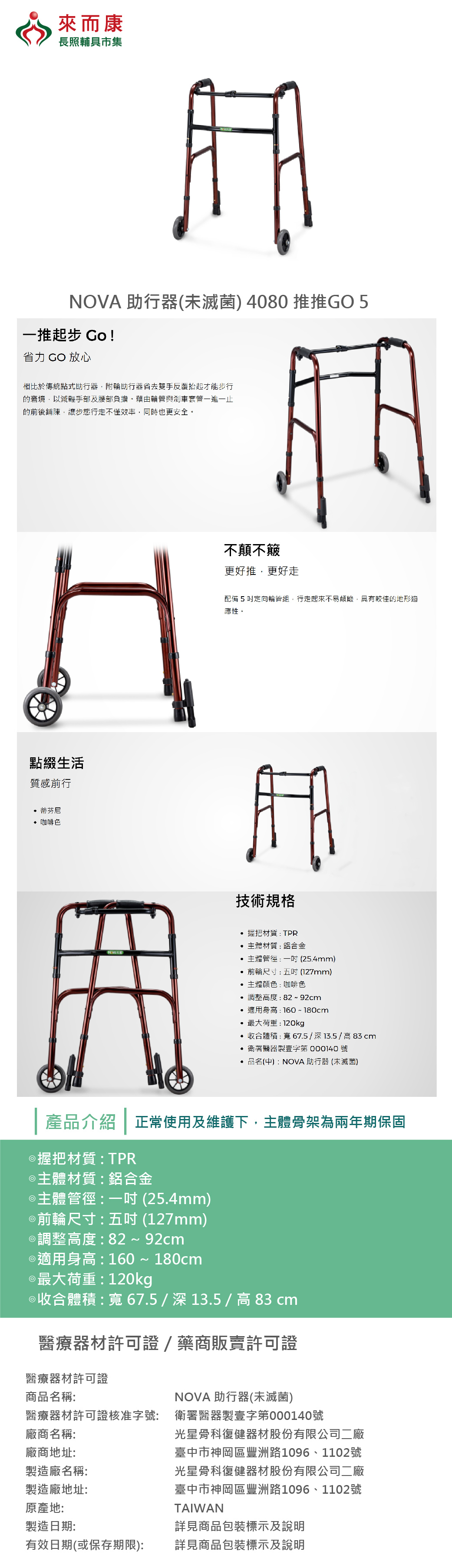 前腳「5" 定向輪管」搭配後腳「下壓式止滑套管」的設計讓您可以直接推著步行