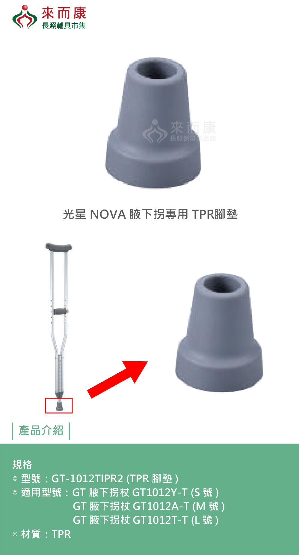 ◎ 適用型號:GT 腋下拐杖GT1012Y-T (S號)、 GT 腋下拐杖GT1012A-T (M號)、GT 腋下拐杖GT1012T-T (L號)