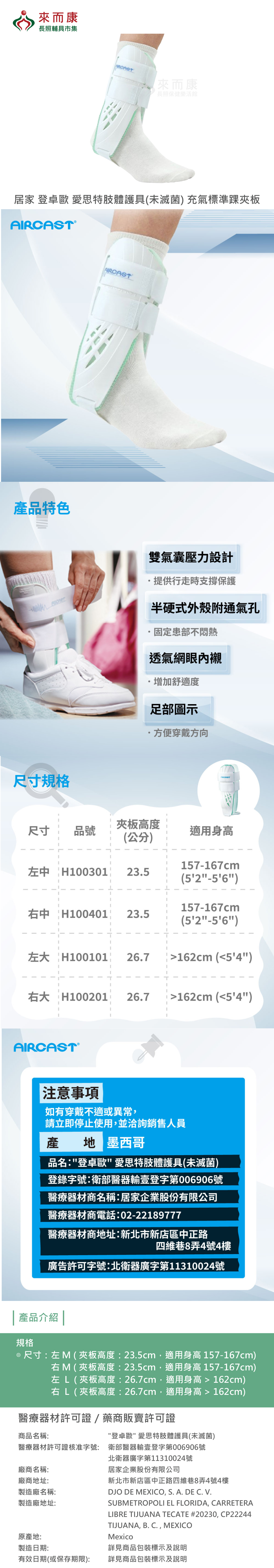 注意事項:如有穿戴不適或異常,請立即停止使用,並諮詢銷售人員