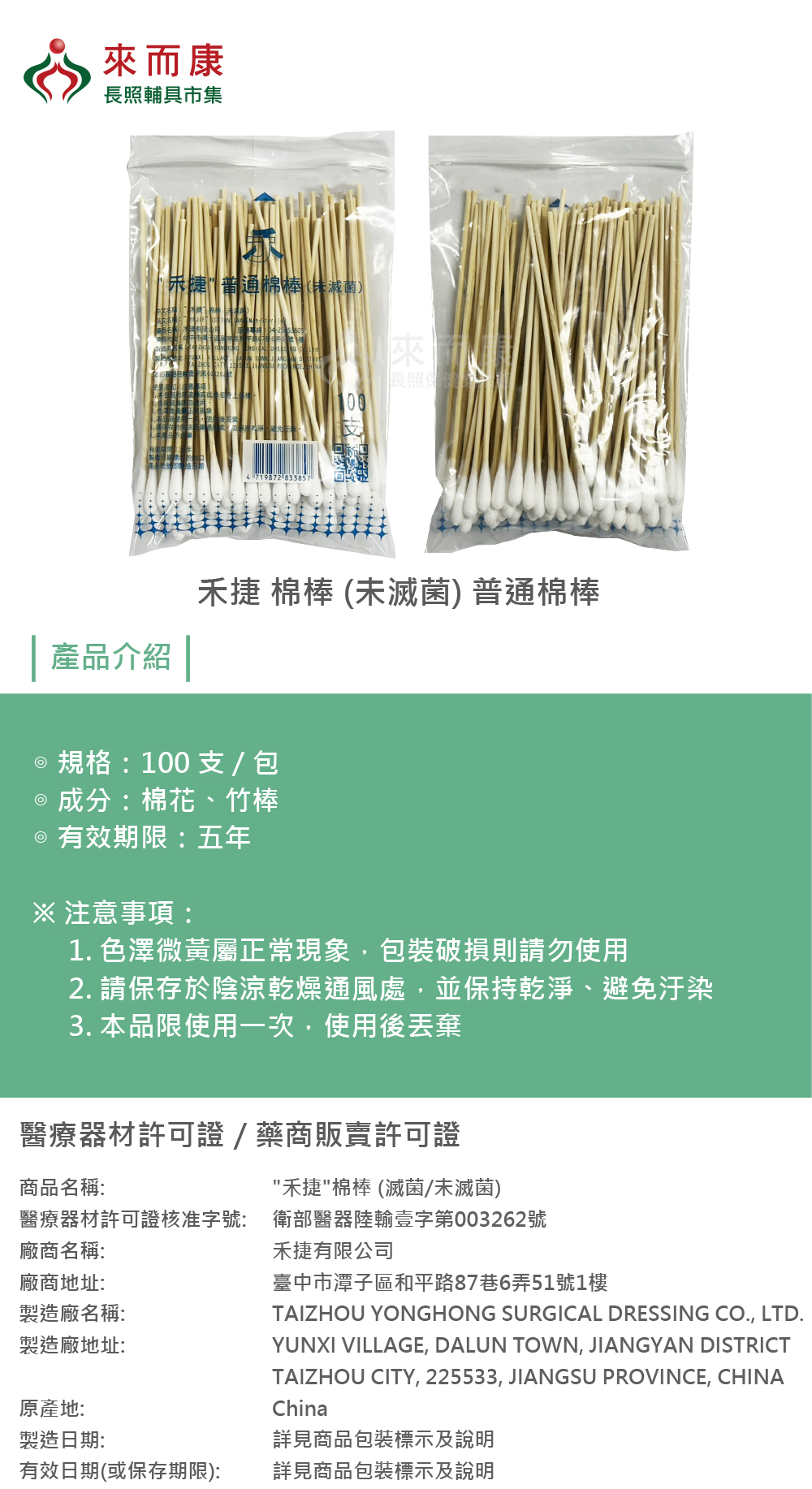 禾捷 棉棒 (未滅菌) 普通棉棒 100支/包 200包/箱 未滅菌 棉花 棉棒 棉花棒