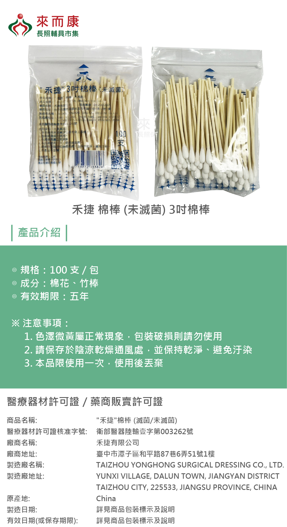 禾捷 棉棒 (未滅菌) 3吋棉棒 100支/包 500包/箱 未滅菌 棉花 棉棒 棉花棒