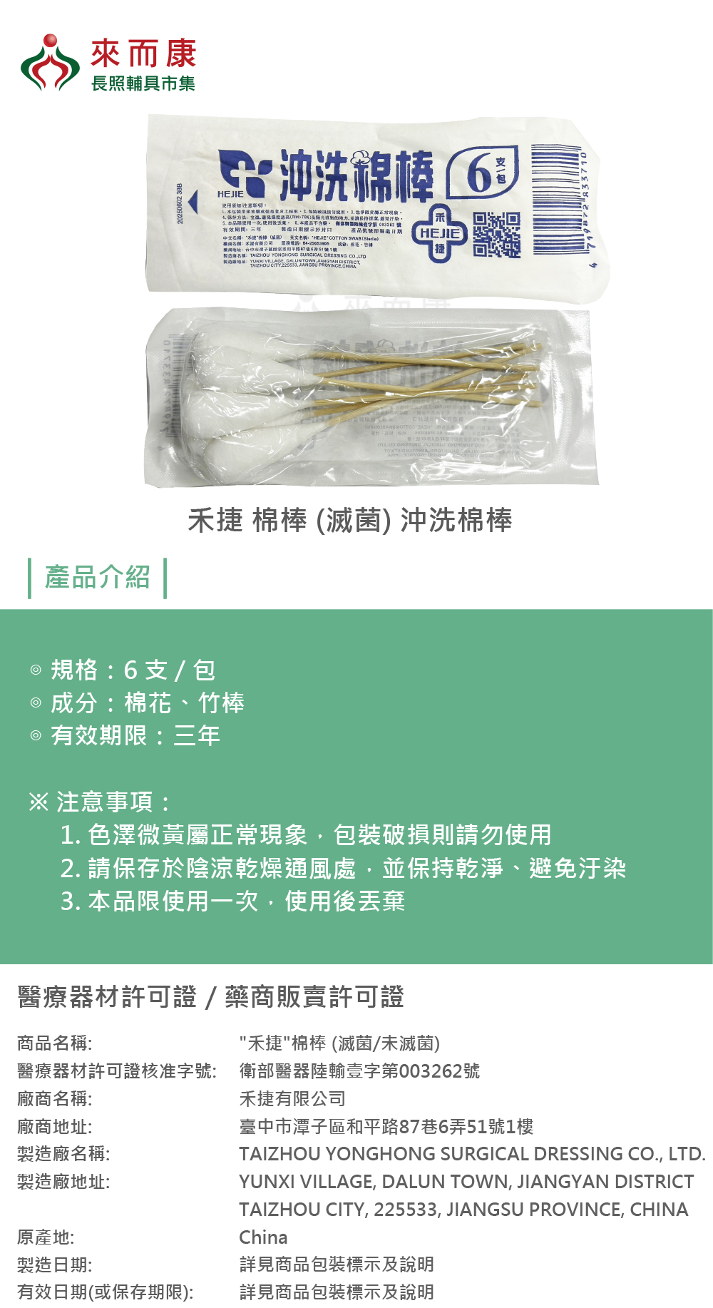 禾捷 棉棒 (滅菌) 沖洗棉棒 6支/包 500包/箱 滅菌 棉花 棉棒 棉花棒