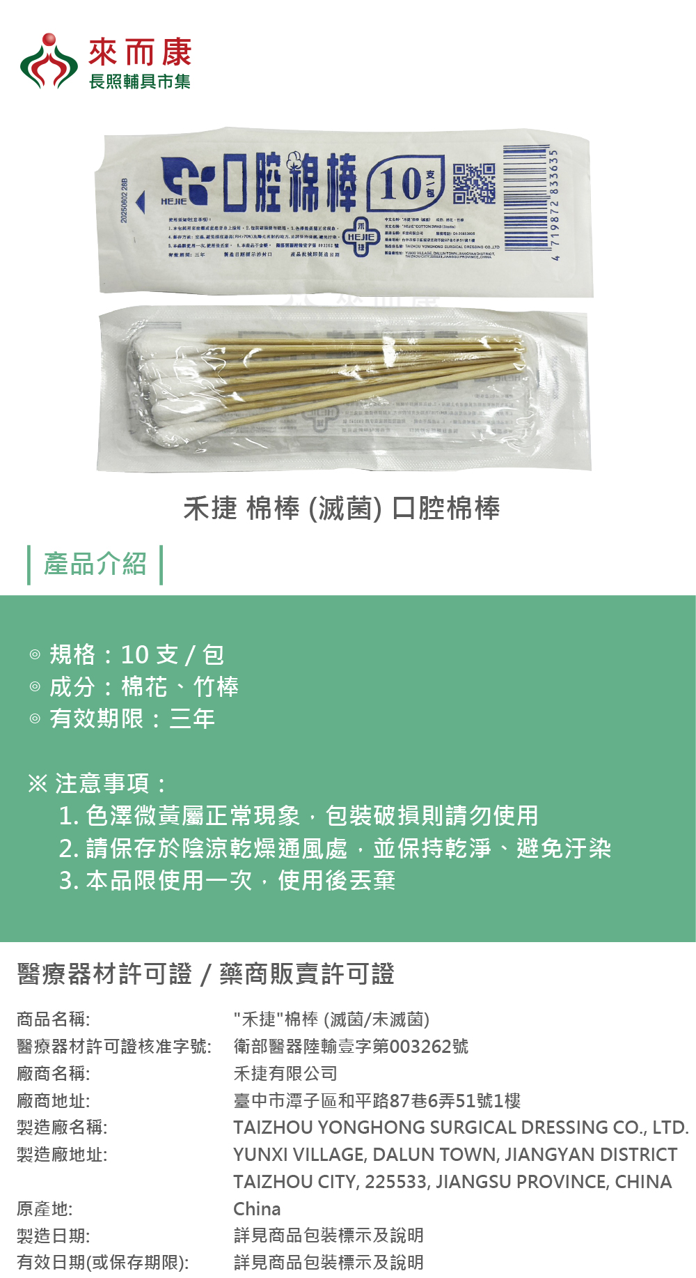禾捷 棉棒 (滅菌) 口腔棉棒 10支/包 900包/箱 滅菌 棉花 棉棒 棉花棒