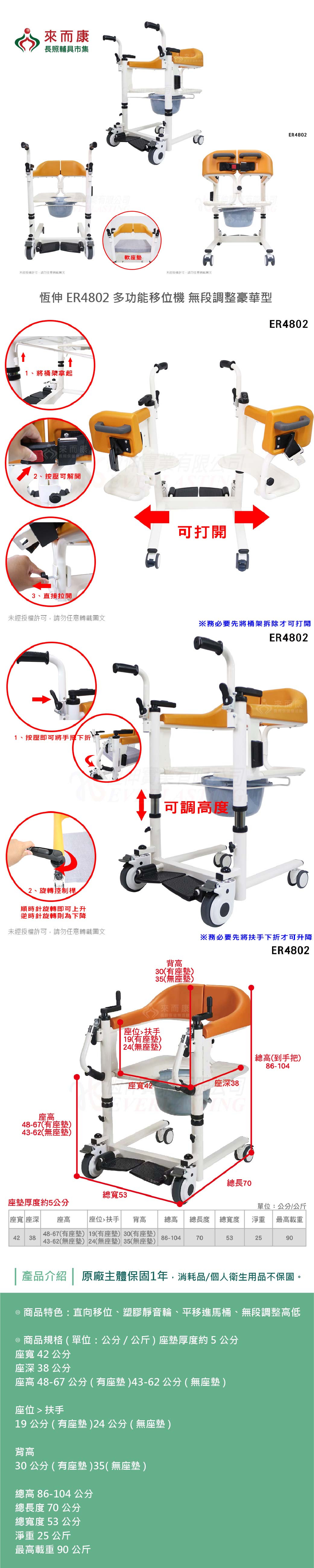 * 商品特色:直向移位、塑膠靜音輪、平移進馬桶、無段調整高低