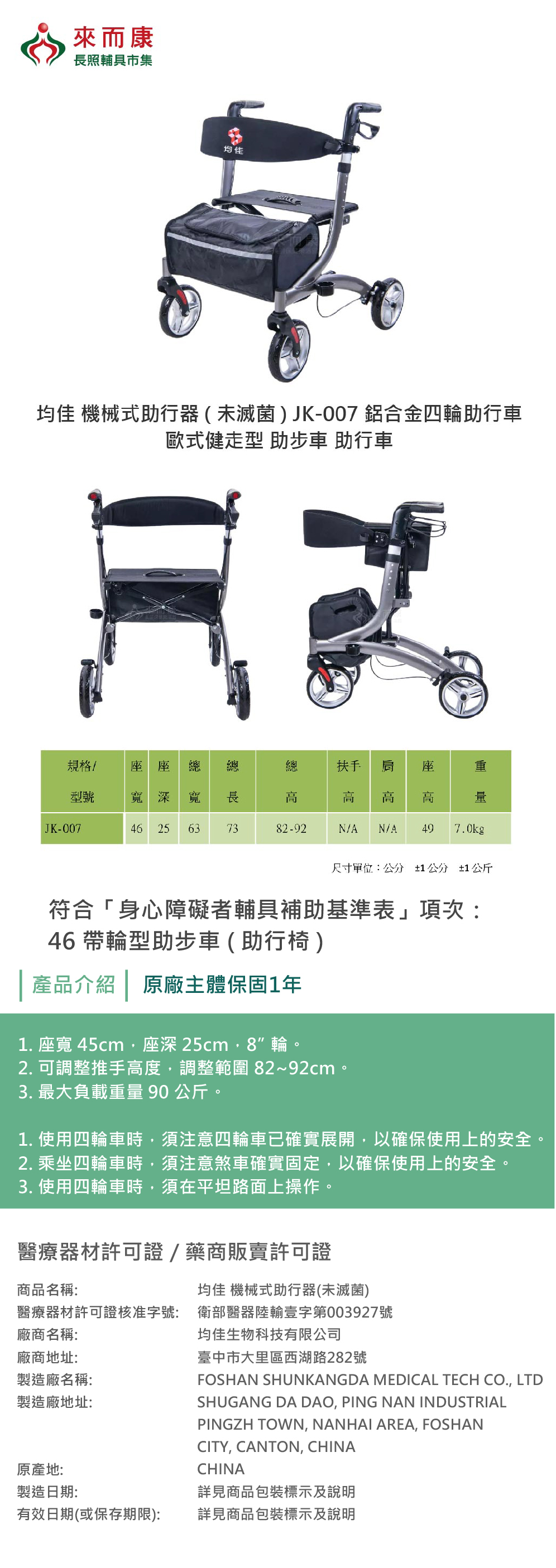 衛部醫器陸輸壹字第003927號