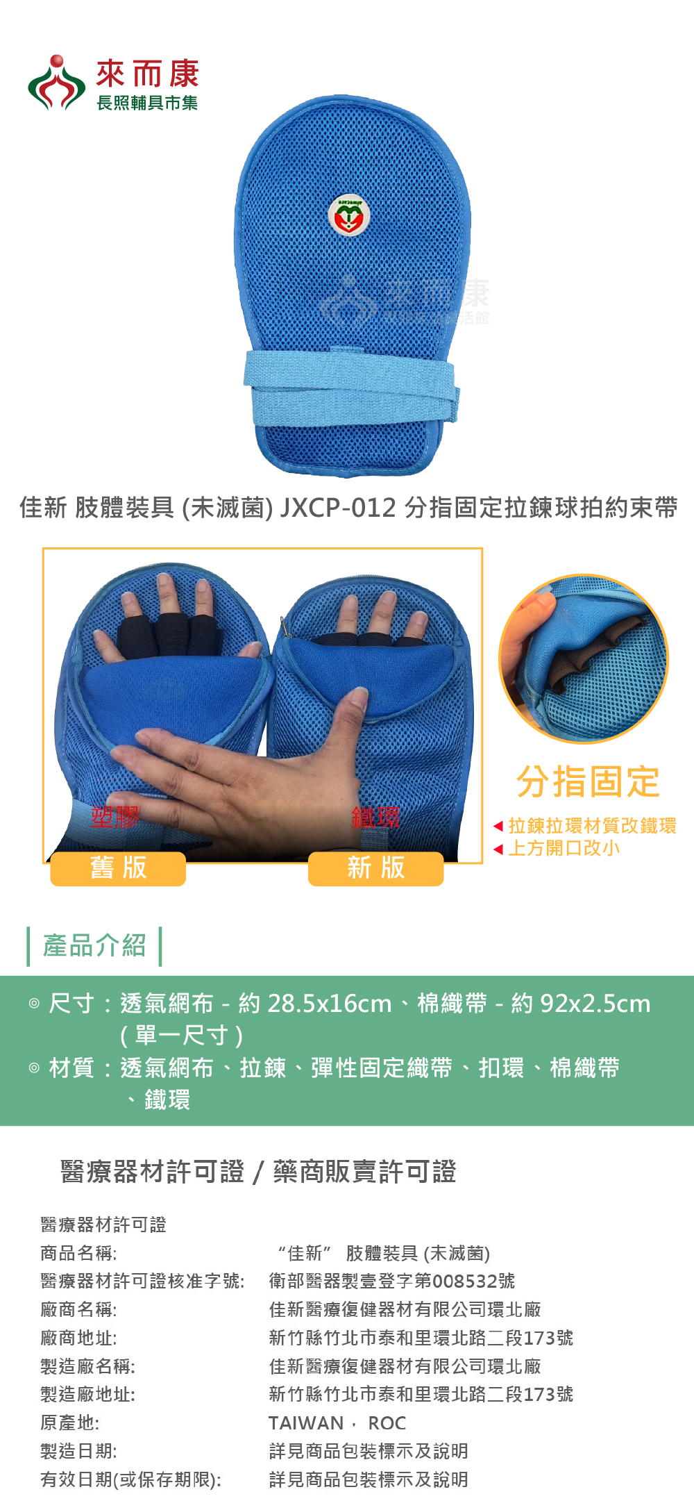佳新 肢體裝具 (未滅菌) JXCP-012 分指固定 拉鍊 球拍約束帶 單支販售 透氣網布 球拍 約束帶 JXCP012