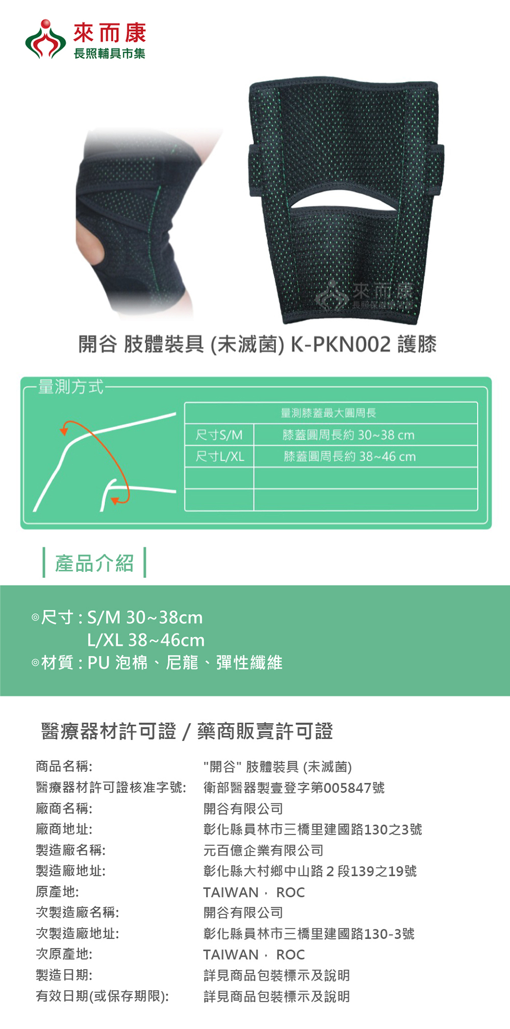 開谷 肢體裝具 (未滅菌) K-PKN002 護膝 護具 護膝 護膝套 膝蓋護膝 關節保護 護具 KPKN002