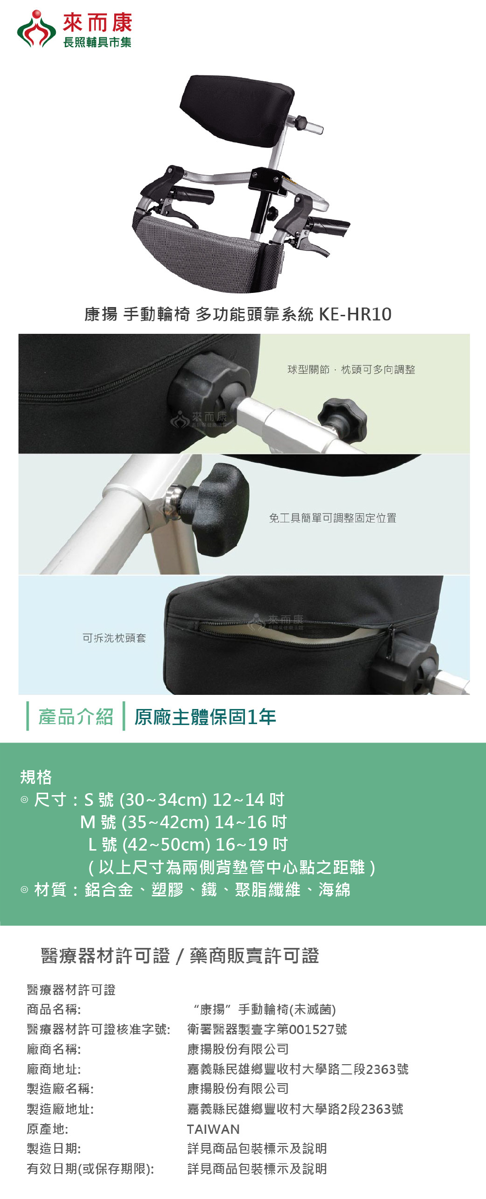 -提供頭部支撐,可調整支撐高度、前後位置及角度