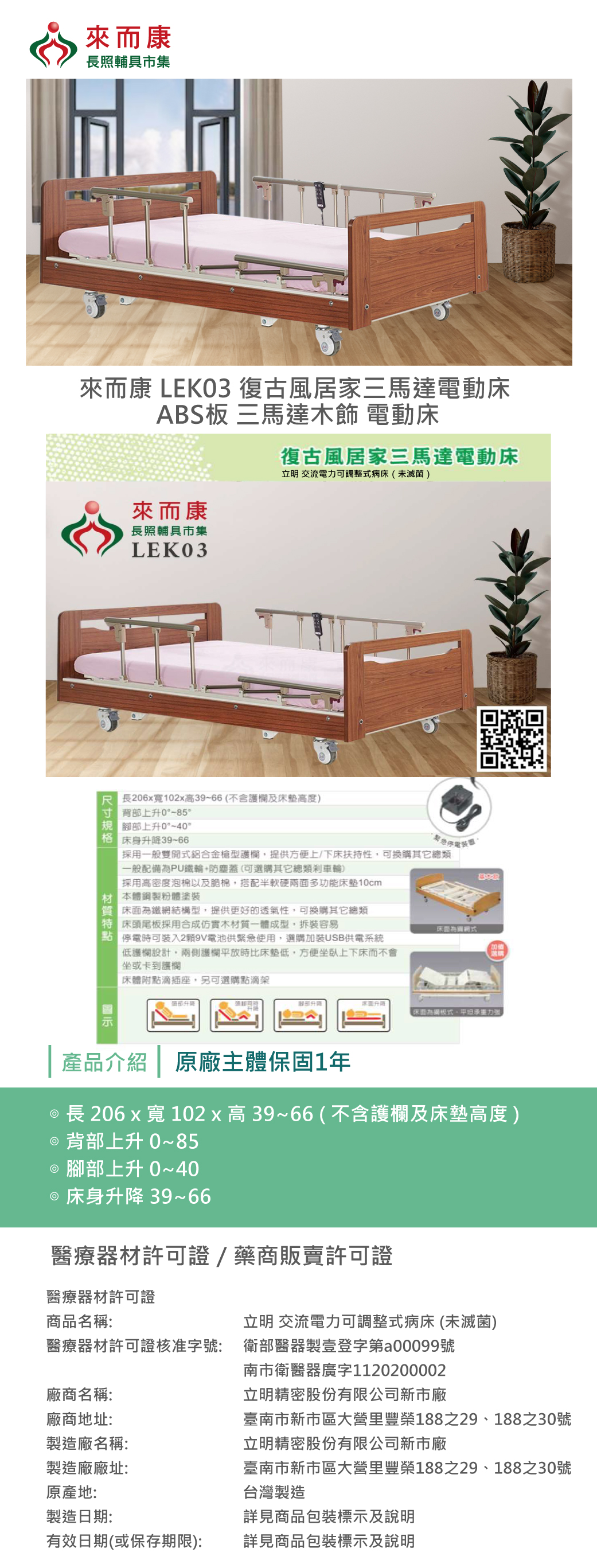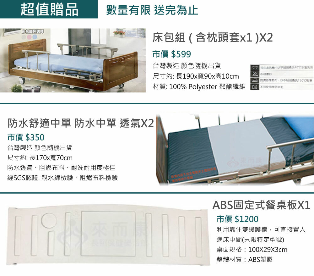 來而康 LEK03 復古風居家三馬達電動床 ABS板 電動床 三馬達木飾 電動床補助 贈:床包X2+中單X2+ABS餐桌板X1
