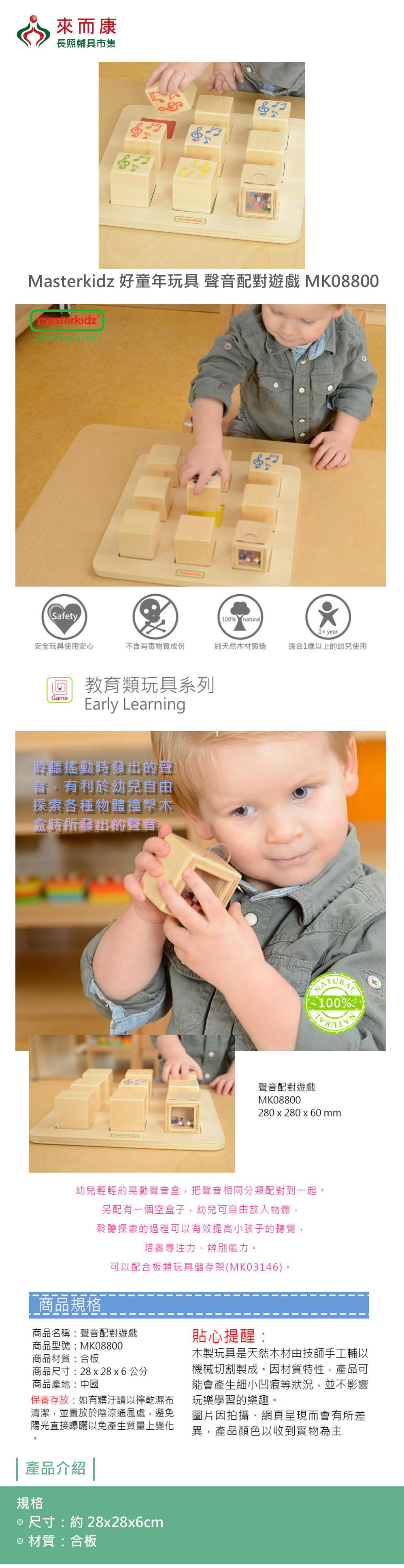 另配有一個空盒子, 可自由放入物體,聆聽搖動時發出的聲音,