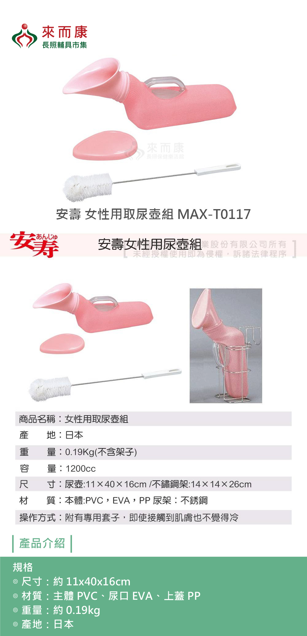 日本 安壽 女性用 取尿壺組 MAX-T0117 攜帶式 尿壺 R255 臥床 小便器 夜壺 MAXT0117