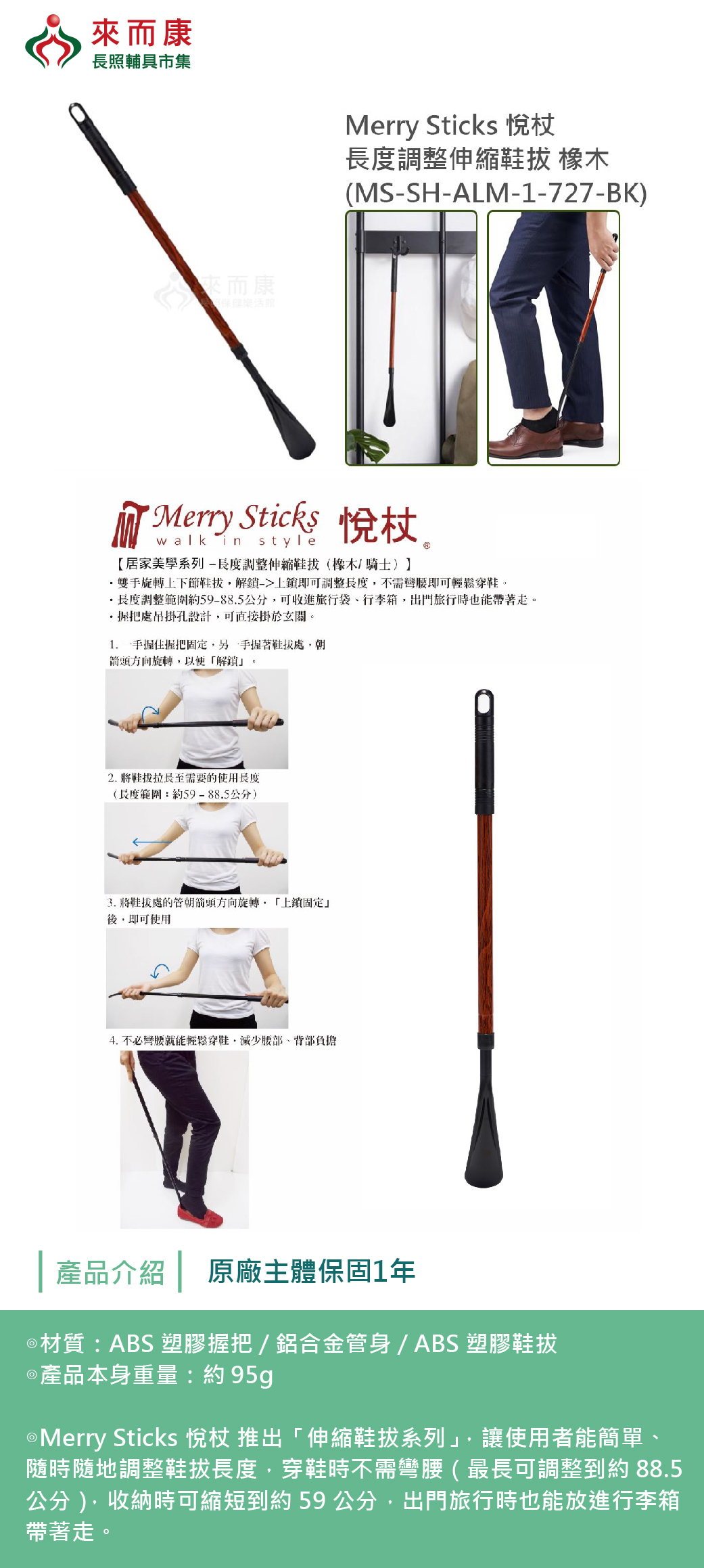 .Merry Sticks 悅杖 推出「伸縮鞋拔系列」,讓使用者能簡單、隨時隨地調整鞋拔長度,穿鞋時不需彎腰