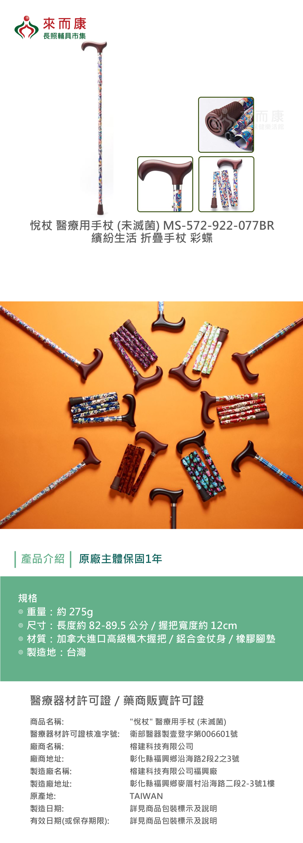 Merry Sticks 悅杖 醫療用手杖 (未滅菌) MS-572-922-077BR 繽紛生活 折疊手杖 彩蝶 MS572922077BR