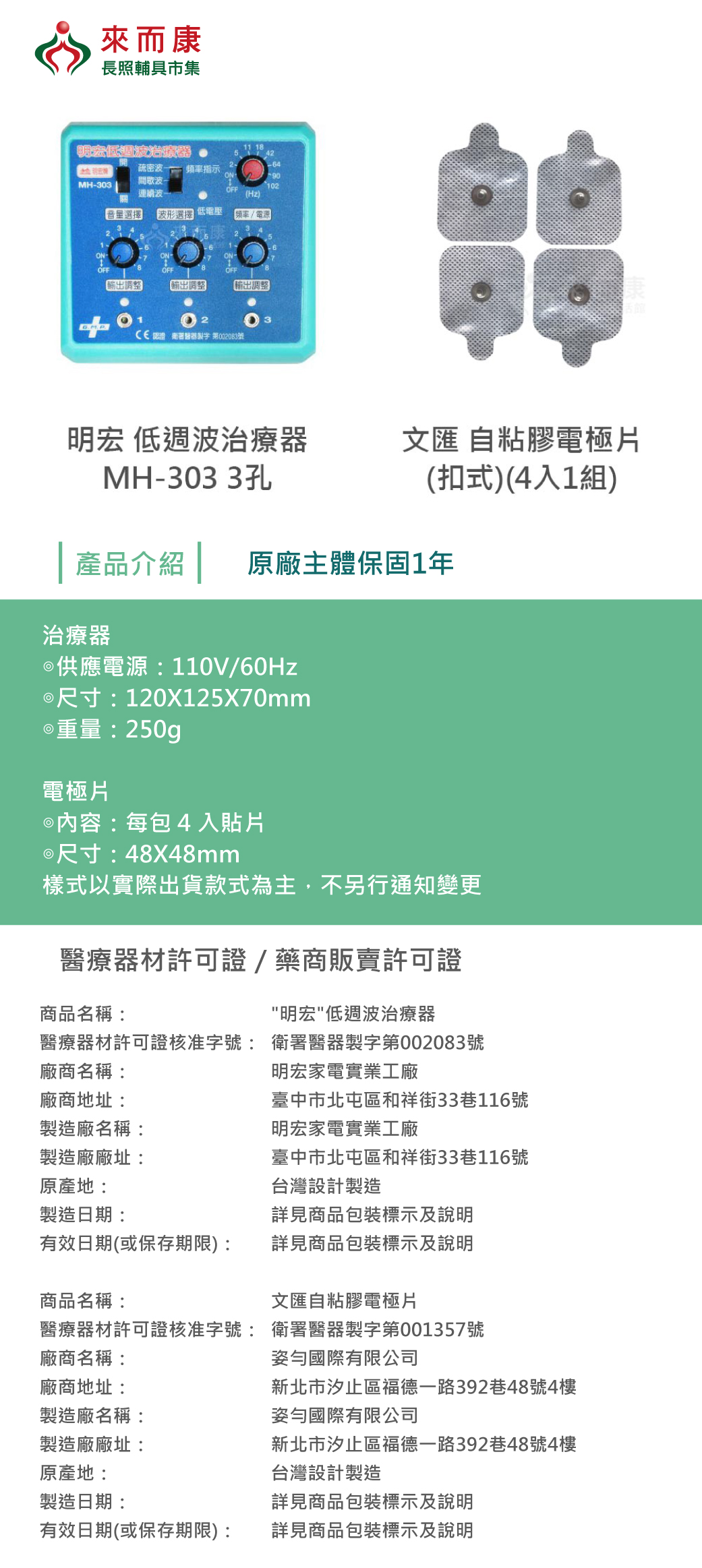 衛署醫器製字第001357號