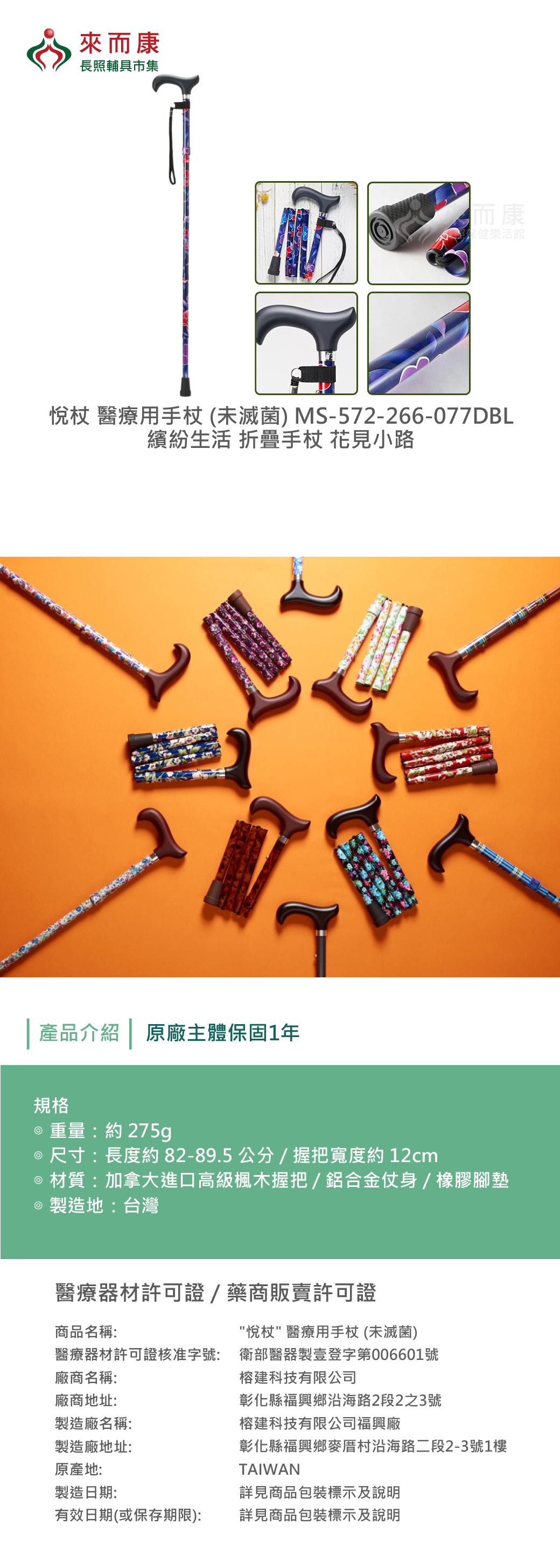 Merry Sticks 悅杖 醫療用手杖 (未滅菌) MS-572-266-077DBL 繽紛生活 折疊手杖 花見小路 MS572266077DBL