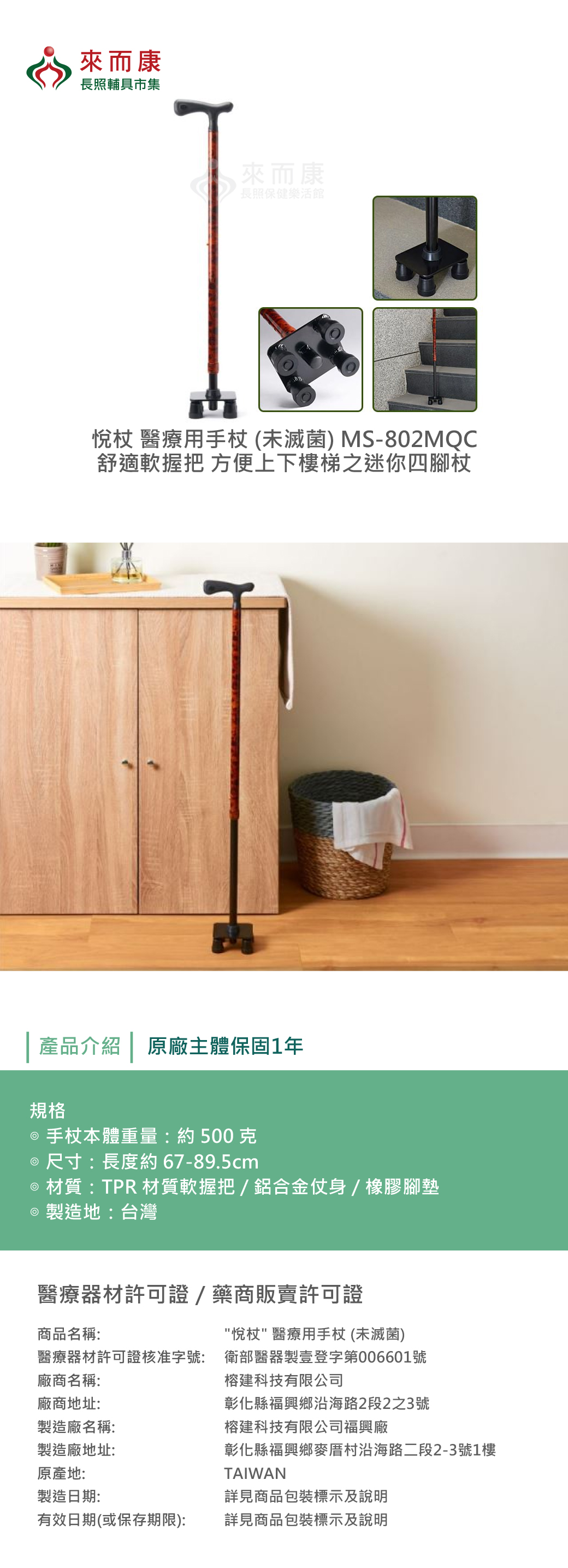 Merry Sticks 悅杖 醫療用手杖(未滅菌) MS-802MQC 方便上下樓梯之迷你四腳杖 拐杖 手杖 MS802MQC